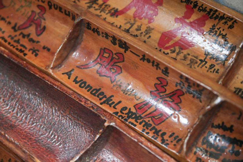 扁担上搭客的多样留言。(赖鑫琳摄)
