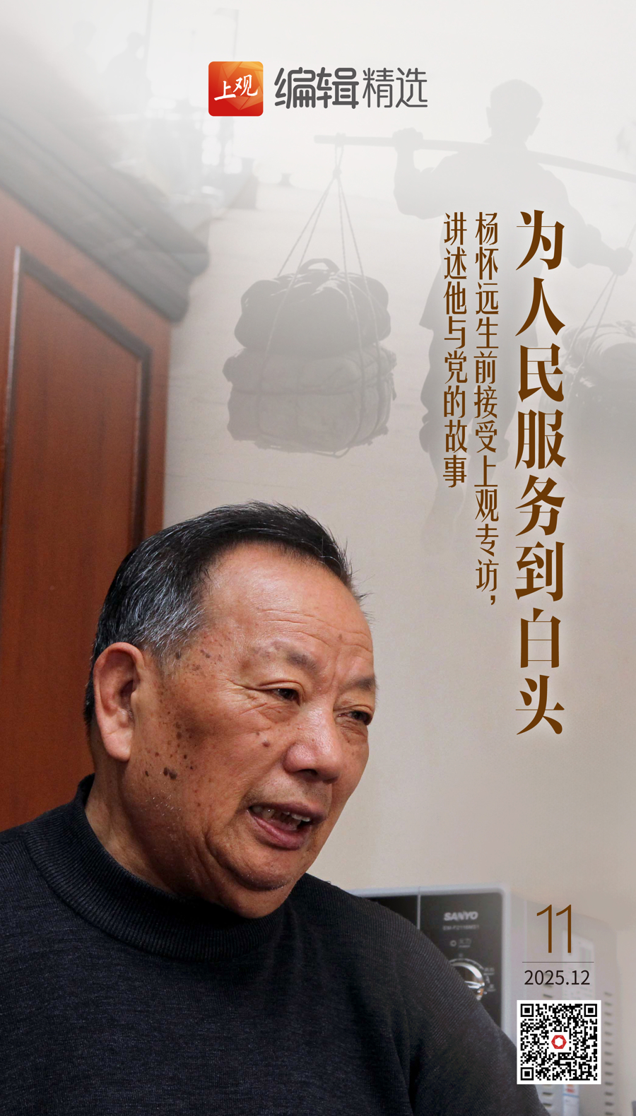 据中国远洋海运集团有限公司音讯,寰宇优秀共产党员、寰宇工作标准、寰宇最好意思退役军东说念主、“最好意思激越者”、新中国航运服务业的特出代表,“小扁担精神”的创举东说念主杨怀远同道,因病医治无效,于2025年12月11日0时0分在上海瑞金病院灭尽,享年88岁。以下是2021年在庆祝建党100周年的日子里,上不雅新闻专访杨怀远同道,以口述实录的阵势阐发他与党的故事。